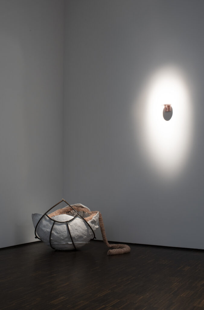 Pathetic, 2014- 19, embossed aluminum, wood, found objects, electric neck massager. 7 ft. x 5 ft. x 4 ft.