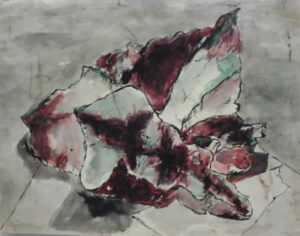 Acrylic painting on paper from crumpled paper, class project, West High, Waterloo, Ia. 1964