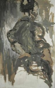 Acrylic painting from live model, 6 ft x 3ft, done for High school Art class with Mrs. Loomis at West High, Waterloo, Iowa, 1965.